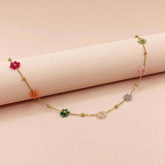 🌸 Collier en Acier Inoxydable Doré – Fleurs en Cristal